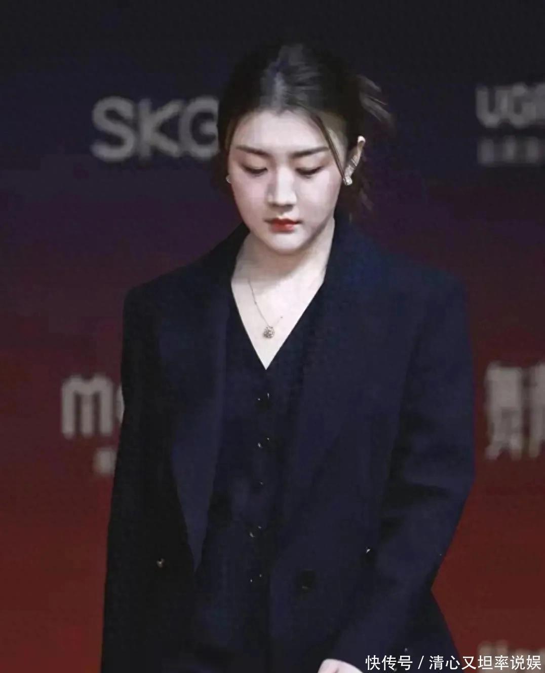 厦门盛典的红毯上,当一众女星纷纷以深V、露肩、高开叉礼服争奇斗艳时,陈梦却以一袭利落黑西装压轴登场,不露肩、不拖尾,却走出了一种与众不同的冠军气场。